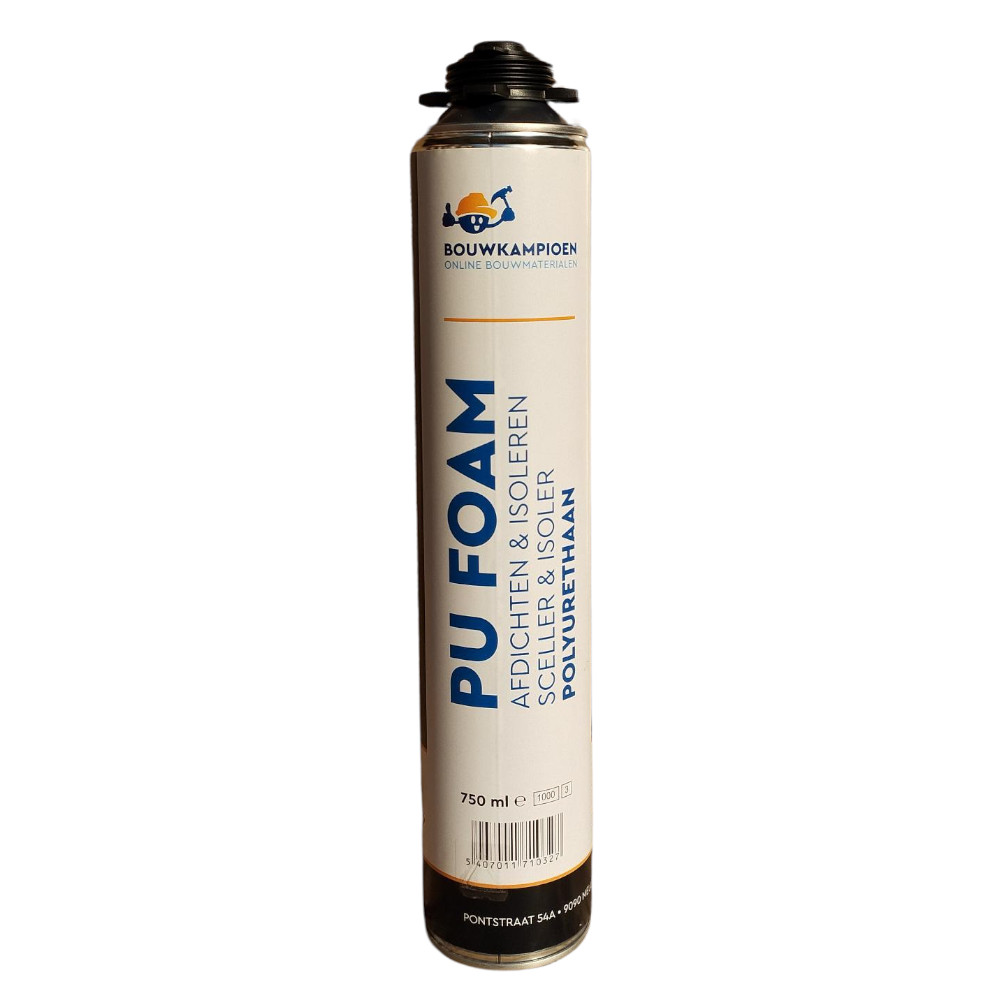 Bouwkampioen PU Schuim est une mousse polyuréthane prête à l'emploi à un composant avec une excellente adhérence sur divers matériaux. Elle est idéale pour l'étanchéité des joints, des passages et l'isolation, et est extrêmement adaptée pour la pose précise de fenêtres et de cadres de portes. La faible pression de durcissement et l'expansion modérée préviennent la déformation des éléments de construction.