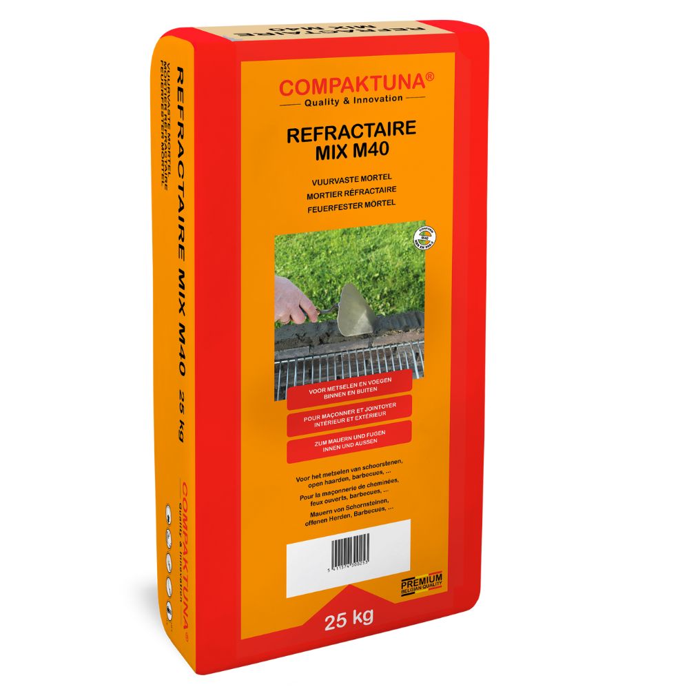 REFRACTAIRE-M est un mortier prêt à l'emploi, réfractaire qui possède une prise plus rapide qu'un mortier traditionnel. Il est utilisé pour la maçonnerie et le jointoiement de briques réfractaires, cheminées, foyers, barbecues, conduits de cheminée, ou en tant qu'enduit pour foyers.