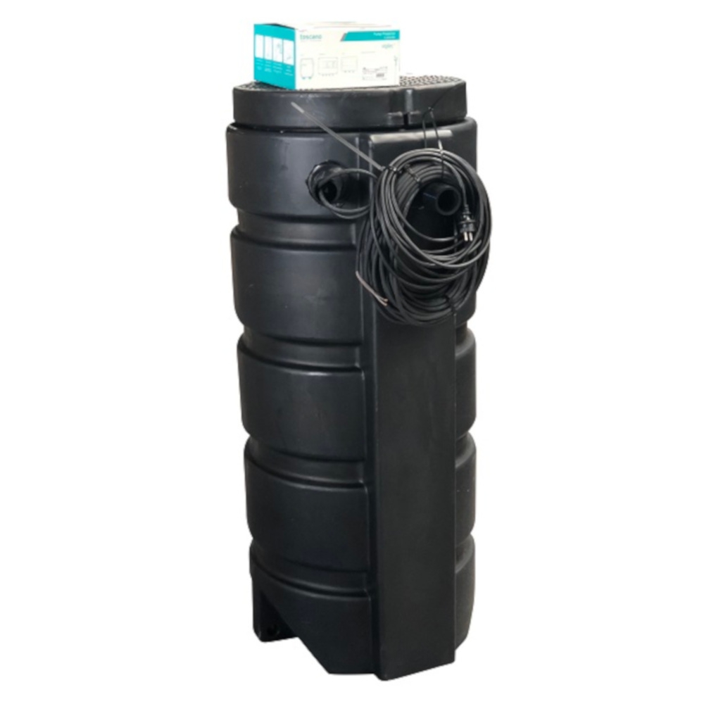 DS plastics PRO 1 pompe en PE durable équipée d'une pompe à eaux usées, de commutateurs à flotteur et d'un boîtier de commande. Idéale pour pomper les eaux usées souillées provenant de douches, de lavabos, de machines à laver, de caves, d'étangs, de fosses septiques, etc.