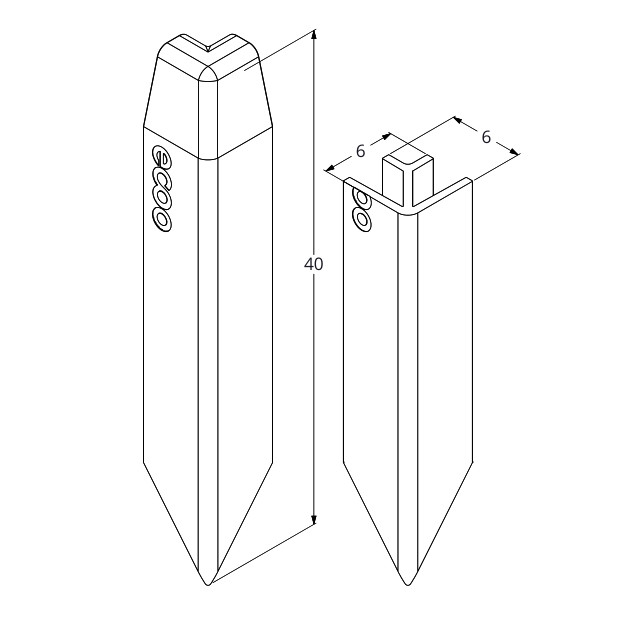 - hauteur : 40 cm (20 cm d'ancrage sous la bordure)