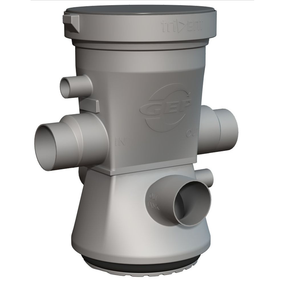 Le filtre pour eau de pluie GEP Trident 325 est un filtre auto-nettoyant pour systèmes d'eau de pluie en montage souterrain, adapté jusqu'à 325 m² de surface de toiture, accessible par un accès avec couvercle. L'évacuation de l'eau propre peut se faire à gauche comme à droite, vous permettant de choisir lors du montage.
