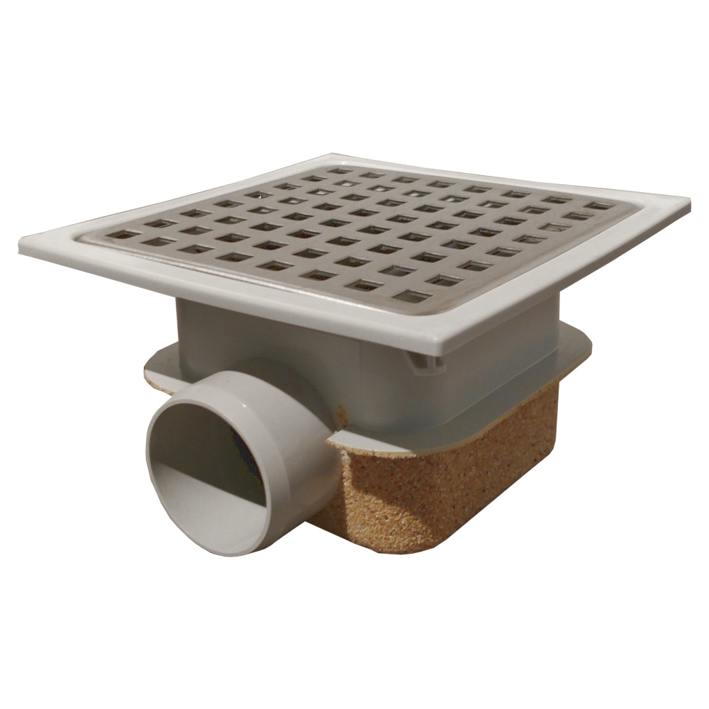 Une grille d'égout ABS avec évacuation horizontale (hermétique) avec couvercle RVS.