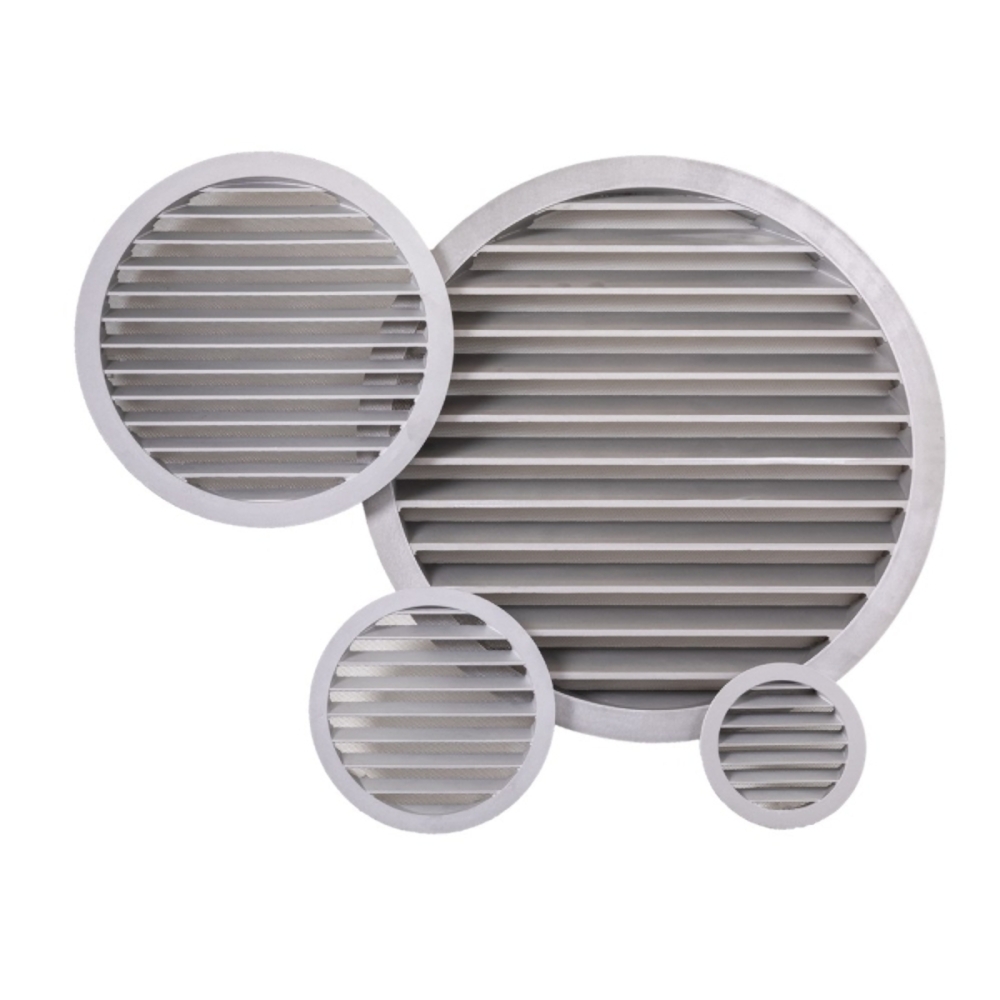 Les grilles rondes en aluminium coulé Tilmar T170, équipées d'un grillage anti-insectes, sont des grilles extérieures en aluminium robustes qui peuvent être raccordées à des conduits ronds. Les grilles s'adaptent notamment directement sur des conduits spiro.