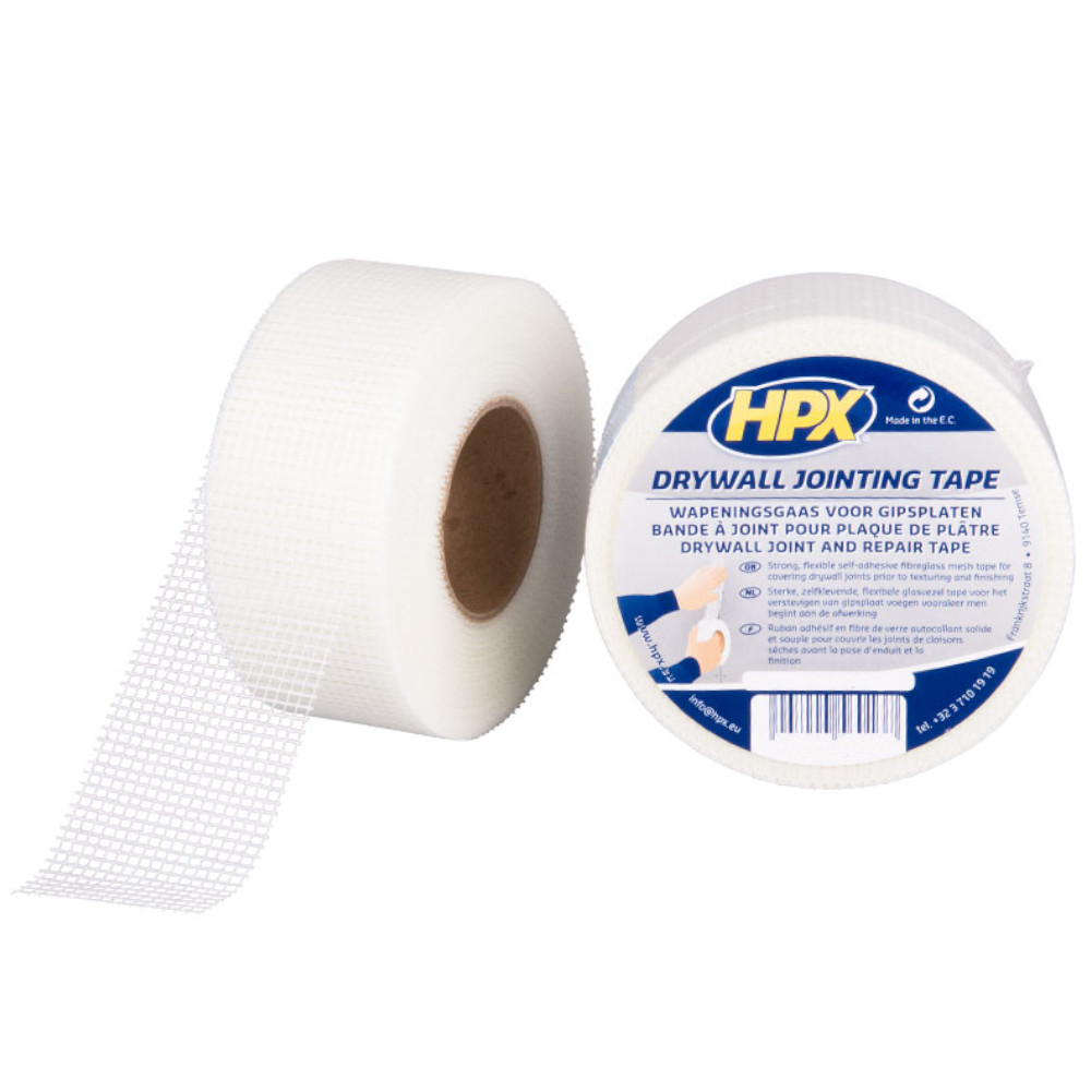 La bande à joint HPX (type 7700) est constituée d'un grillage en fibre de verre fin avec une couche adhésive acrylique sensible à la pression. La structure ouverte permet au plâtre ou au mortier de pénétrer, créant une liaison qui répartit uniformément les tensions. Avec une résistance à la traction d'environ 260 N/25 mm, la bande offre suffisamment de réserve pour des joints jusqu'à 3 mm sans s'étirer ni se déformer.