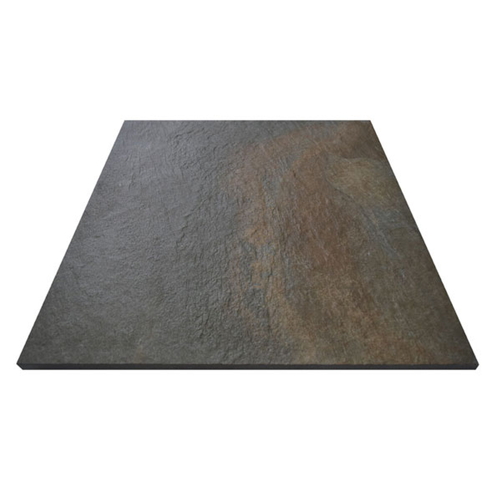 Stoneline Ardoise Cuivre 60x60 2cm d'épaisseur est un carrelage extérieur en céramique pleine avec le caractère "ardoise rustique".