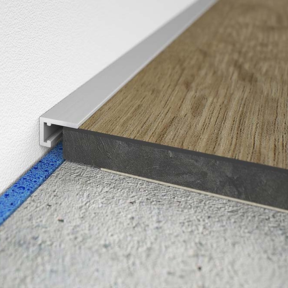 Les plinthes en aluminium Mini-liste créent une connexion discrète et innovante entre le revêtement de sol et le mur, le cadre de fenêtre ou la marche. Les profils de finition Mini-liste peuvent être utilisés partout où des joints de connexion et de dilatation doivent être respectés.