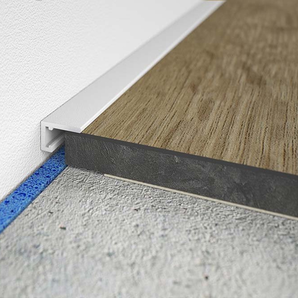 Les plinthes en aluminium Miniliste créent une connexion discrète et innovante entre le revêtement de sol et le mur, le cadre de fenêtre ou la marche. Les profils de finition Miniliste peuvent être utilisés partout où les joints de connexion et de dilatation doivent être respectés.