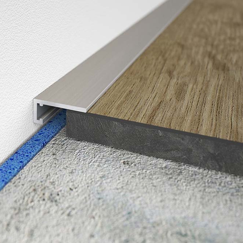 Les plinthes Mini-liste en aluminium créent une connexion discrète et innovante entre le revêtement de sol et le mur, le cadre de fenêtre ou la marche. Les profils de finition Mini-liste peuvent être utilisés partout où des joints de raccordement et de dilatation doivent être respectés.