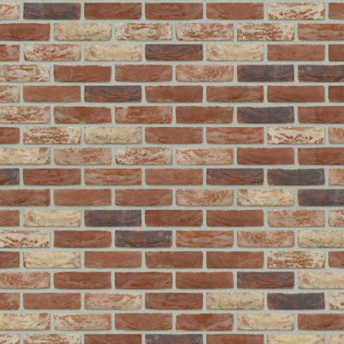 Les briques de façade (non perforées) ont cinq côtés sablés et une face plate éventuellement dotée d'une longue encoche oblique. La structure est rugueuse avec de fines nervures irrégulières sur la surface sablée. Le processus de cuisson se déroule dans un four à tunnel alimenté au gaz sous une atmosphère légèrement réductrice.