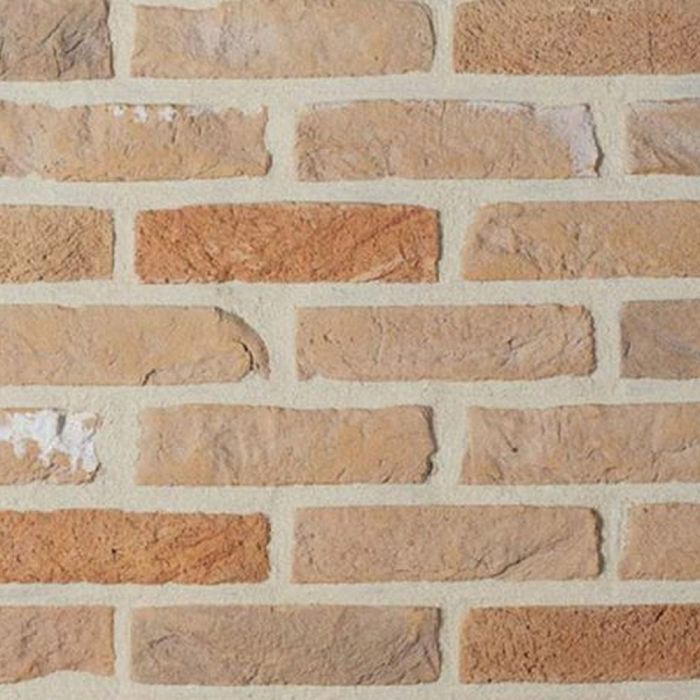 Les briques de façade (non perforées) ont cinq côtés sablés et une face plate éventuellement dotée d'une encoche oblique allongée. La structure est rugueuse avec de fines nervures irrégulières à la surface sablée. Le processus de cuisson se déroule dans un four à tunnel alimenté au gaz, sous une atmosphère légèrement réductrice.