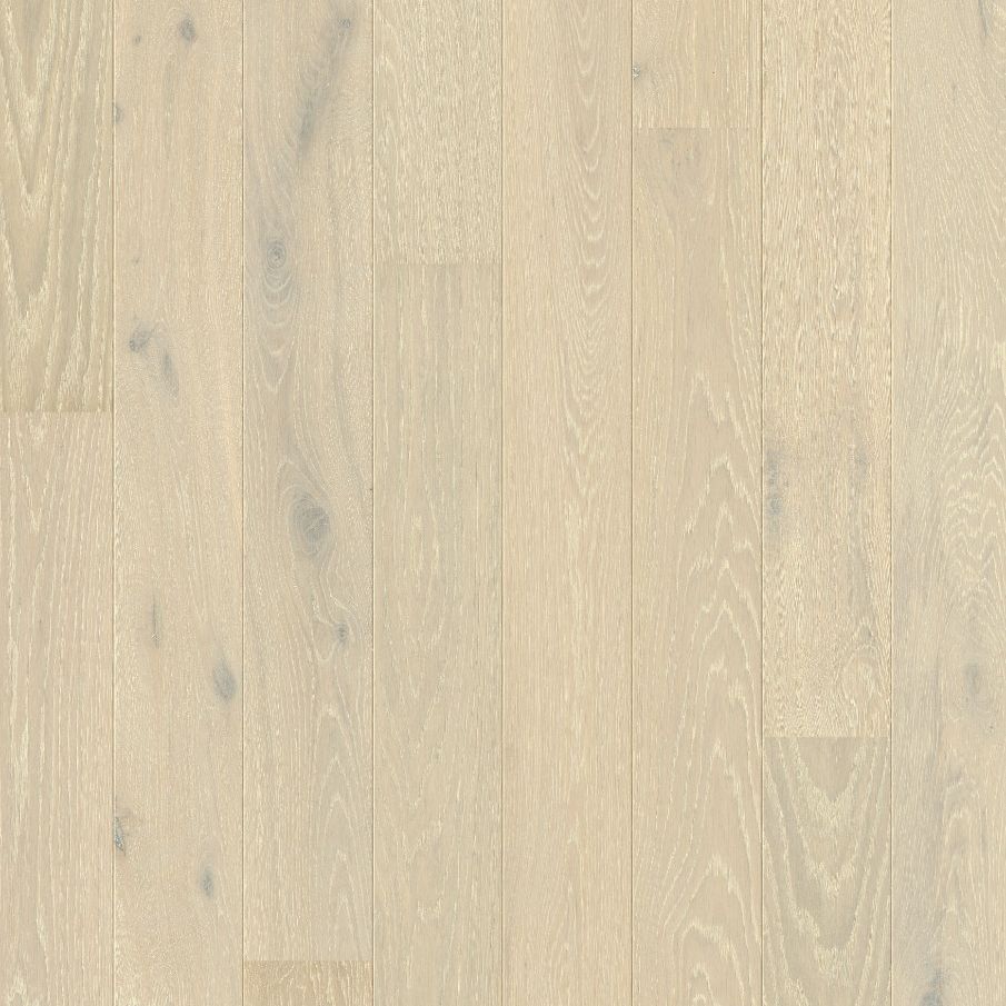 Le Parquet Pergo Falster Chêne Arctique est un parquet en chêne blanc contemporain. Grâce aux nœuds et aux veines de bois légèrement accentués, ce sol en bois naturel donne une impression vivante.