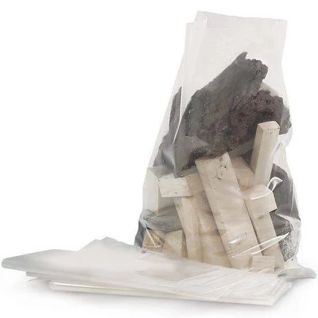 Un sac à déchets transparent solide en film LDPE standard de 60L pour débris de construction.