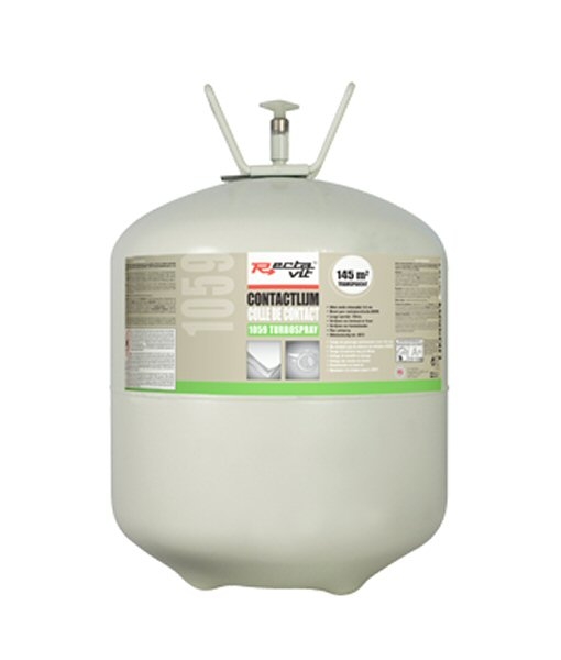 TurboSpray 1059 est une colle contact pulvérisable à temps d'évaporation exceptionnellement court, utilisée pour coller rapidement du laminaire et du placage (linoléum, cuir, liège, caoutchouc) sur des supports poreux.