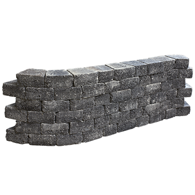 Le Charbon Redsun Pilestone est un élément de mur empilable en forme de trapèze avec 2 côtés rugueux et est très adapté pour les murs de jardin et la création de courbes dans le jardin.