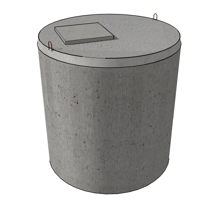 Citerne d'eau pluviale en béton Remacle avec ouverture de trappe ronde Ø50 cm. La citerne est équipée d'un raccord d'entrée et de sortie standard (voir fiche technique)