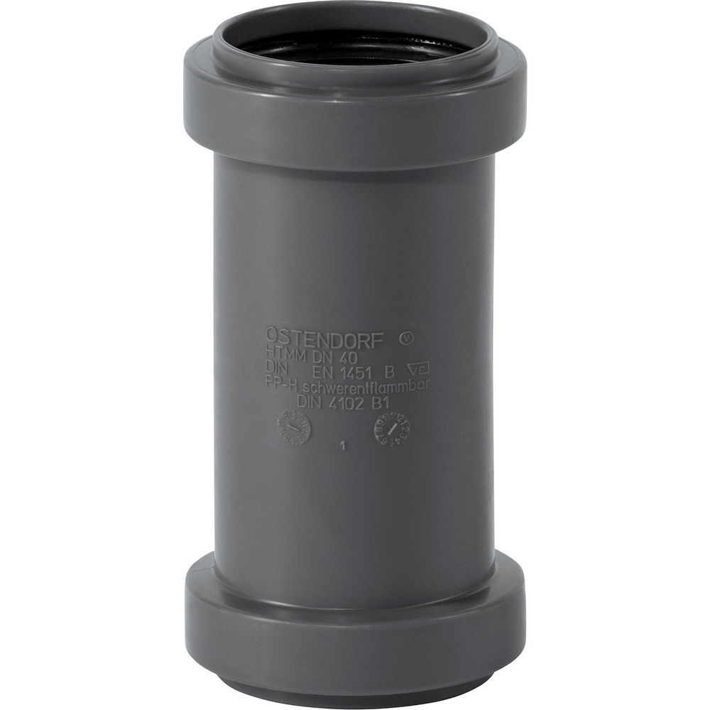 Le Mof / Manchon DN 40 HTSafe® en gris est fabriqué en PP-H résistant aux chocs, coloré en RAL 7043, et offre une excellente isolation acoustique et sécurité incendie.