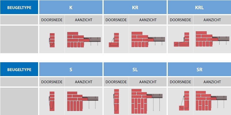 Les Scaldex Catnic Rollaagbeugel Type KR / KRL / SL / SR / SRL / SLR sont disponibles sur commande.