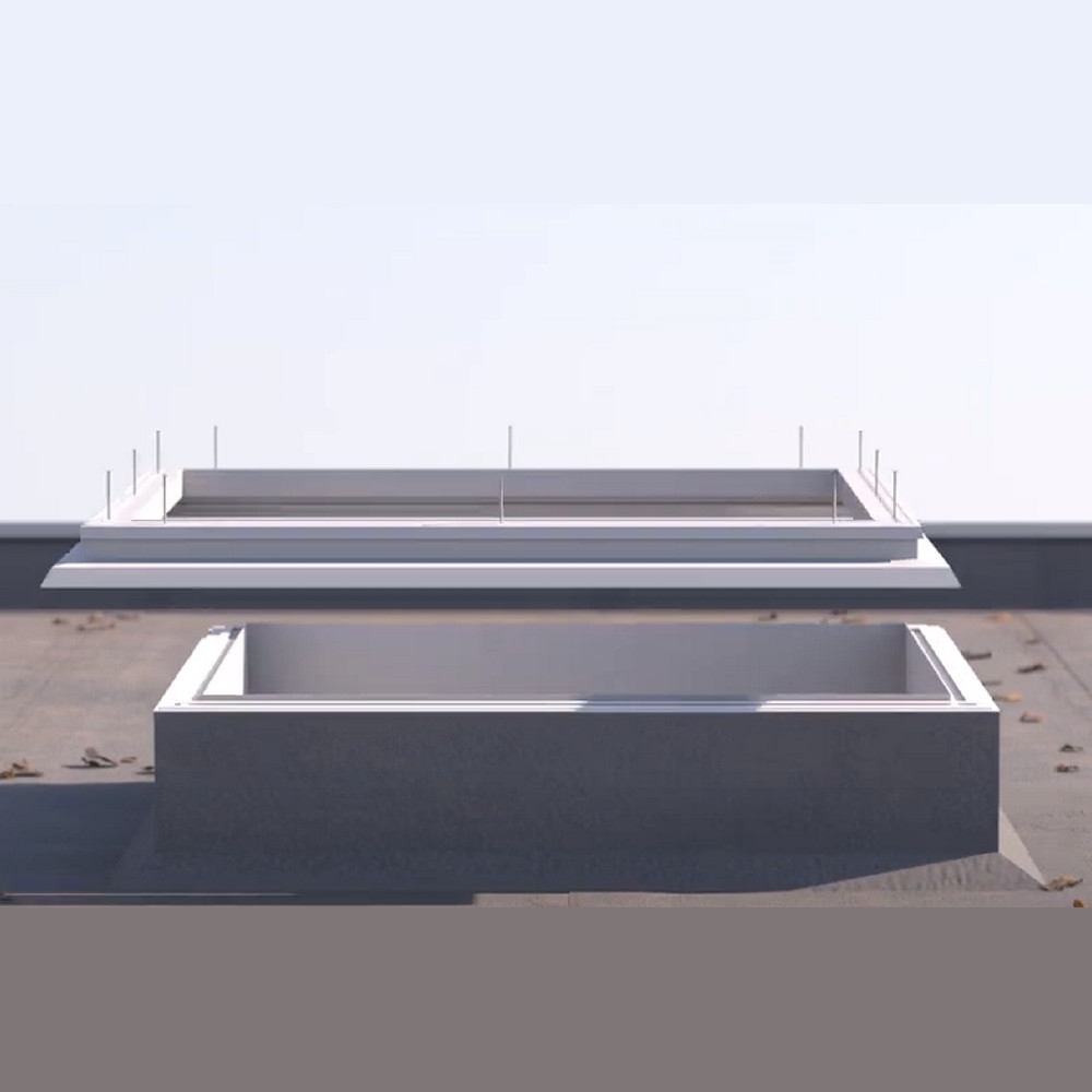 Le cadre de rénovation de Skylux est un cadre intermédiaire solide et bien isolé avec de nombreuses combinaisons possibles pour fenêtres de toit à toit plat et dômes (hybrides) sur des parapets de différents matériaux et/ou avec différentes tailles. De plus, le cadre de rénovation est également adapté à une rénovation partielle. Il est fabriqué en profils en polyvinylchloride extrudé blanc de qualité de fenêtre résistant aux chocs et est isolé avec EPS.