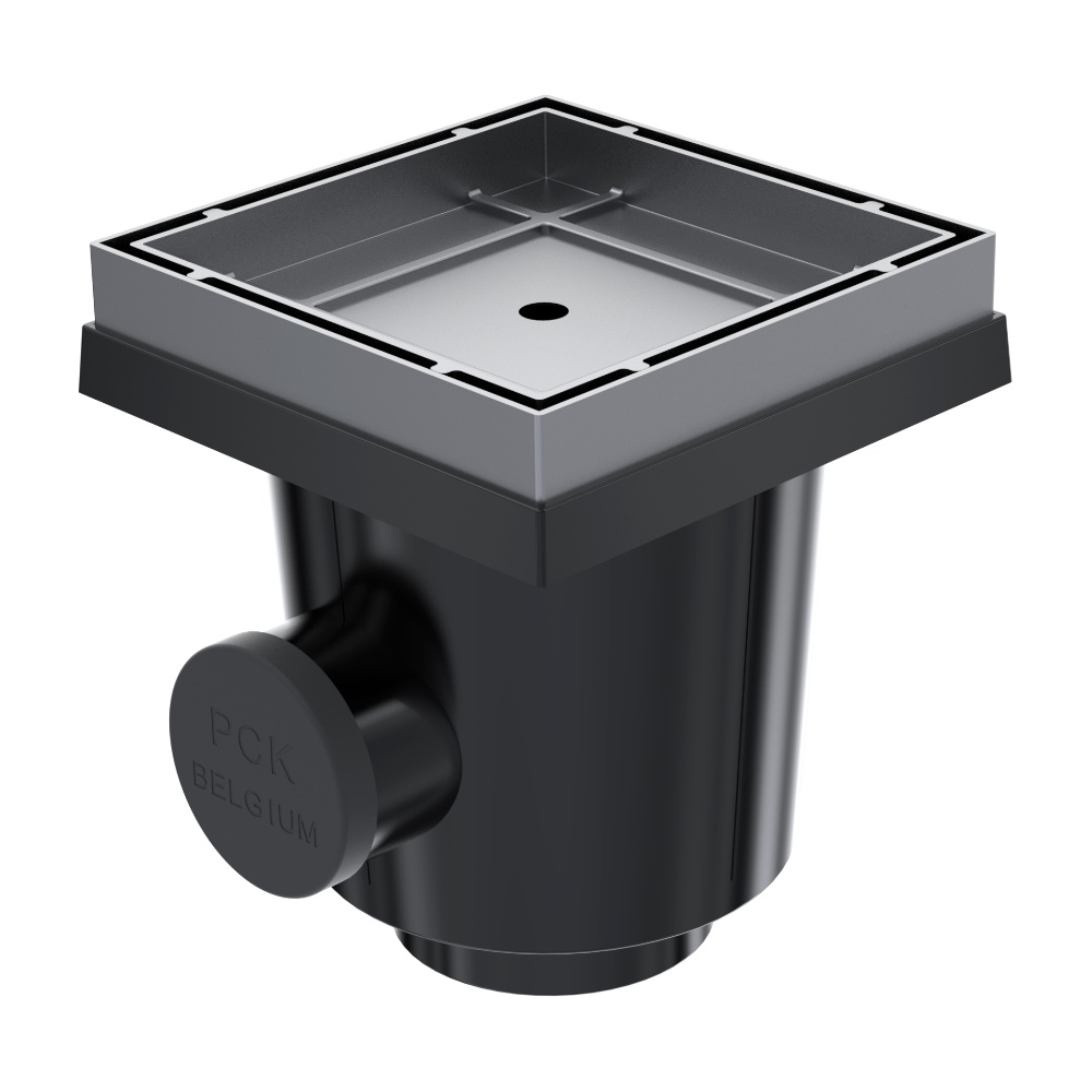 La Star Point Stone est une grille d'évacuation en plastique robuste avec un design carré moderne (200 x 200 mm) et une finition grise. Elle est équipée d'une évacuation latérale (Ø75 mm) et d'une évacuation inférieure (Ø75/110 mm), ce qui la rend extrêmement flexible pour le montage. Le couvercle intégré la rend adaptée à la fermeture temporaire ou permanente lors de l'entretien ou d'une utilisation saisonnière.