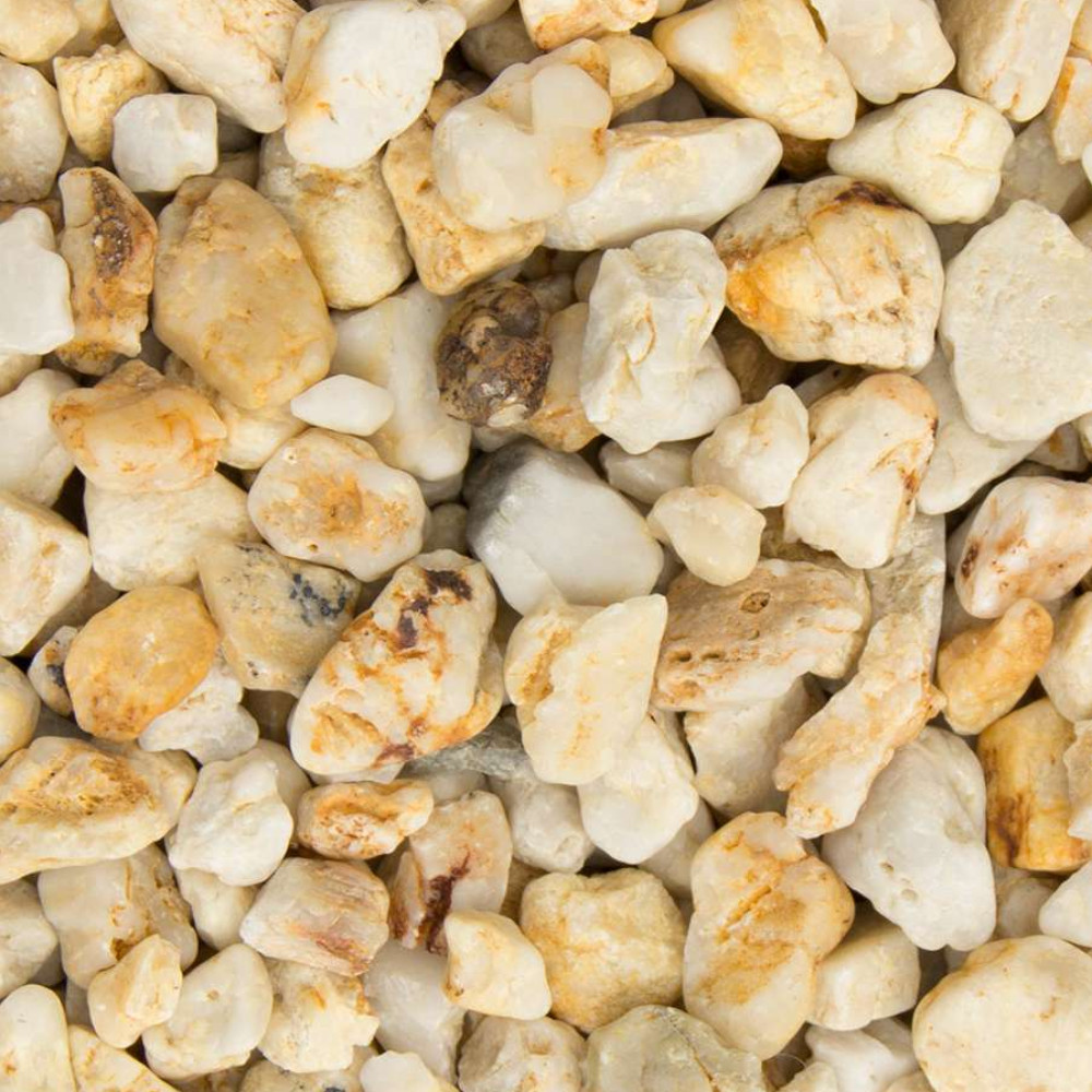 Taunus Kwarts est un gravier quartz blanc-jaune, extrêmement approprié pour des fins décoratives grâce à sa forme naturelle plus ronde