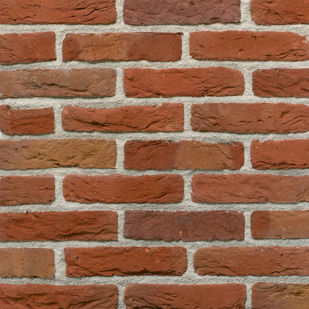 Général : Les briques sont formées en coulant de l'argile dans un moule. Elles présentent les formes et les veines irrégulières typiques des vieilles briques façonnées à la main.