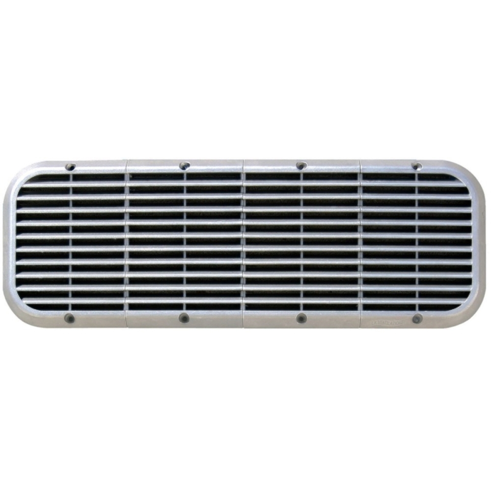 Cette grille se compose de 4 pièces, 2 extrémités et 2 pièces intermédiaires. Il est possible d'élargir la grille par paliers de 100 mm en utilisant un grille intermédiaire Tilmar T178-150.