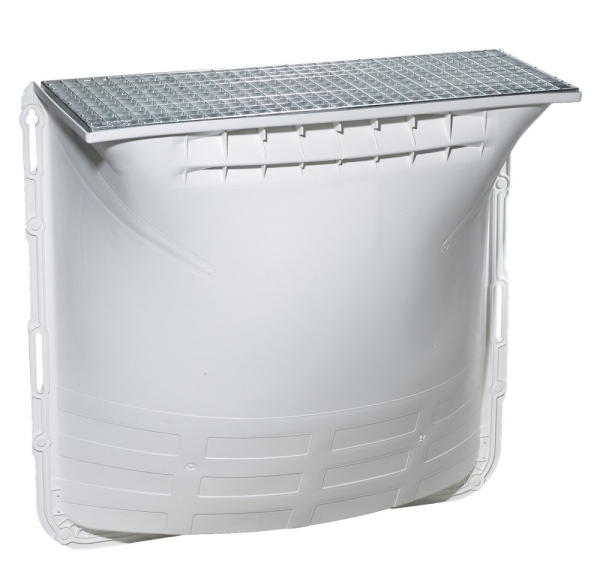 Ceci est une échelle à lumière de cave résistante aux intempéries et stable en forme en polypropylène. L’échelle à lumière de cave, également nommée koekoek ou wolfskuil, est fournie avec une belle grille maas (30x10mm) et des équipements de fixation. Les échelles à lumière de cave sont applicables universellement. La très haute capacité de réflexion de l'échelle à lumière grâce à une surface blanche très lisse permet une lumière optimale dans le caveau. Un kit de raccordement de drainage et de jolis profils de finition en acier inoxydable sont disponibles en option.