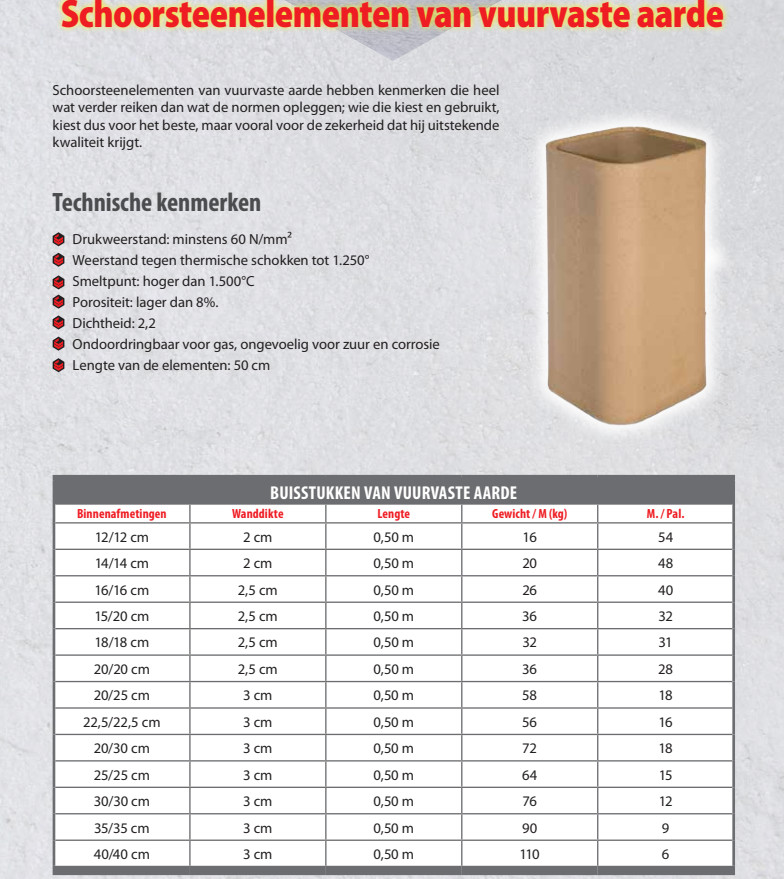 Tuyau de cheminée avec une épaisseur de 2,5 cm et des dimensions intérieures de 16 x 16 cm en argile cuite ou résistant au feu, idéals pour les conduits de fumée de poêles à bois.