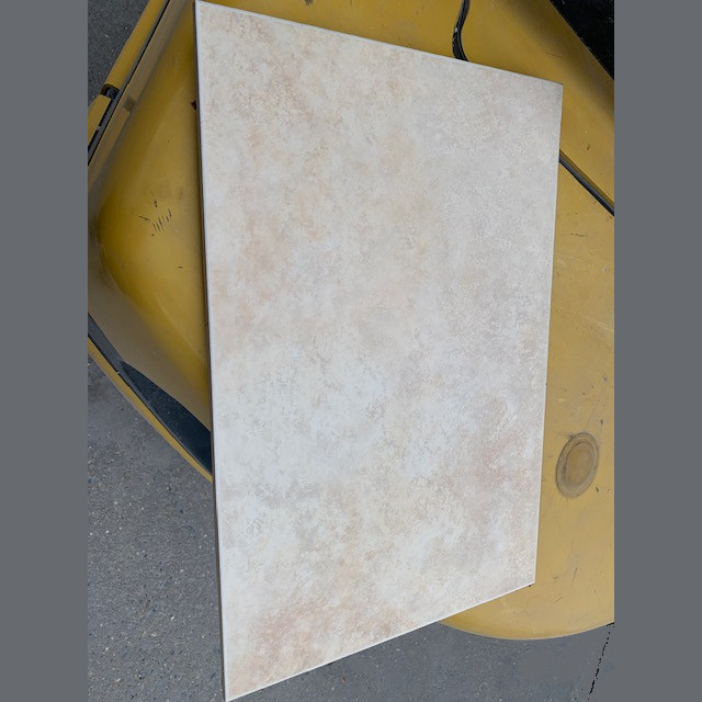 De tegels hebben een beige / roze / wit gewolkt patroon en zijn per doos (= 1 m²) verkrijgbaar.