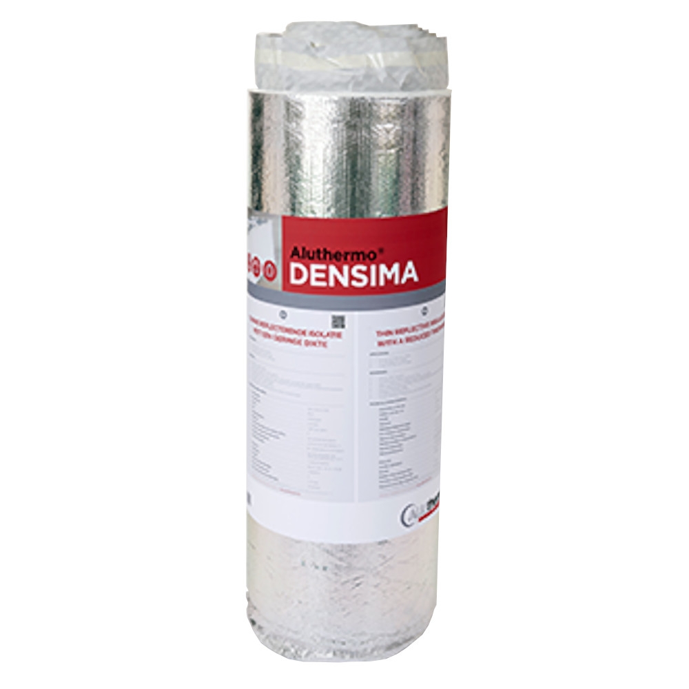 De bovenste reflecterende membraan reflecteert de zonnestralen in de zomer en verhoogt zo aanzienlijk het comfort terwijl de aluminiumlagen de thermische straling in de winter weerkaatsen. De kern van de isolatie, samengesteld uit polyestervezel en een luchtlaag waarin droge en stabiele lucht zit opgesloten, remt effectief de geleidingswarmte af. Aluthermo Densima wordt als isolerend onderdak op daken toegepast, wanneer er geen isolatie tussen de kepers is.