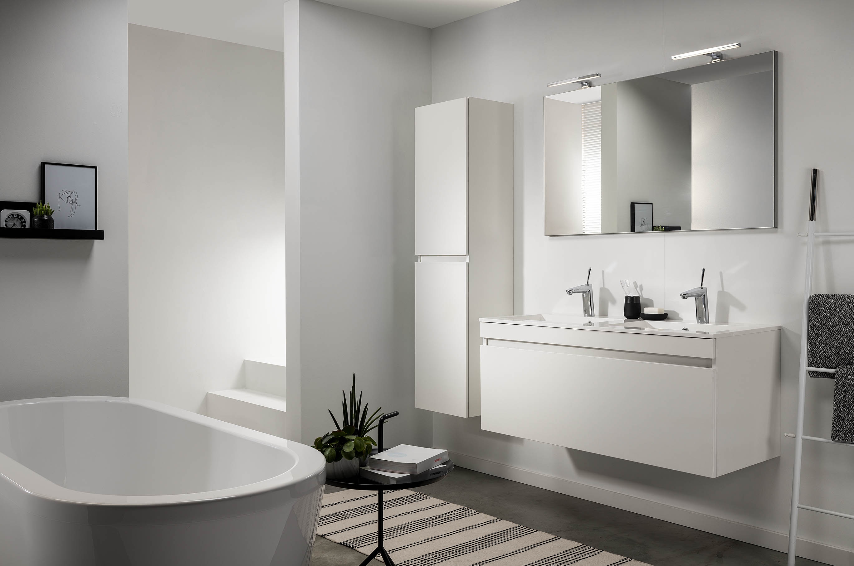 - Kolomkast, spot en kraanwerk niet inbegrepen