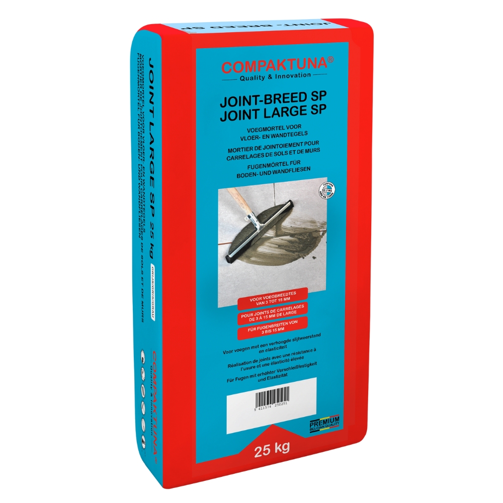 JOINT-BREED is een droge samenstelling die door eenvoudige toevoeging van water een gebruiksklare voegmortel geeft. De bekomen voeg bezit een hoge aanhechtings- en slijtweerstand evenals een hogere elasticiteit dan een normale voegmortel.