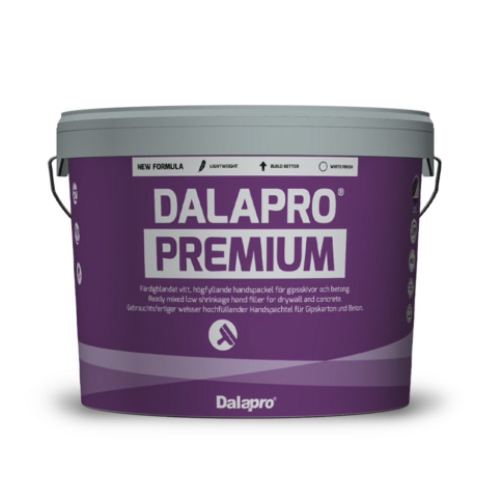 Dankzij de gepatenteerde low-shrinkage-formule heeft Dalapro Premium een uitzonderlijk laag krimppercentage, waardoor minder nabehandeling nodig is en scheurvorming wordt voorkomen. De lichtgewicht vulstoffen en latex-copolymeer binder zorgen voor een dicht en glad oppervlak dat verf of behang optimaal draagt.