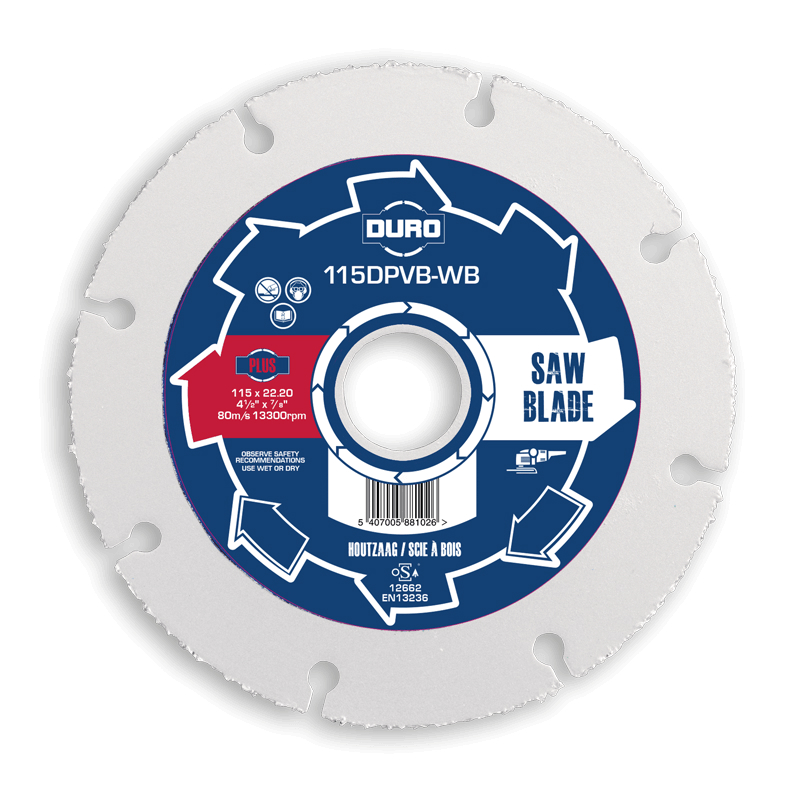 De DPVB-WB is een superdun carbide korrelblad voor haakse slijpers, ideaal voor snel en precies zagen van hard en zacht hout, triplex, hout met spijkers, spaanplaat, MDF, laminaat, epoxy, glasvezel, plastic, gipsplaten en PVC. Het bi-directionele ontwerp zorgt voor efficiënte sneden zonder afbrokkeling. Perfect voor diverse zaagklussen.