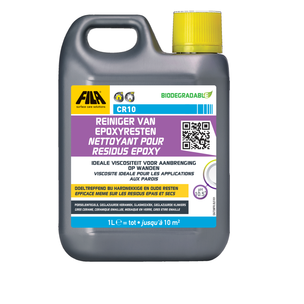 - Door zijn viscositeit verwijdert het epoxy voegresten uit oppervlakken.