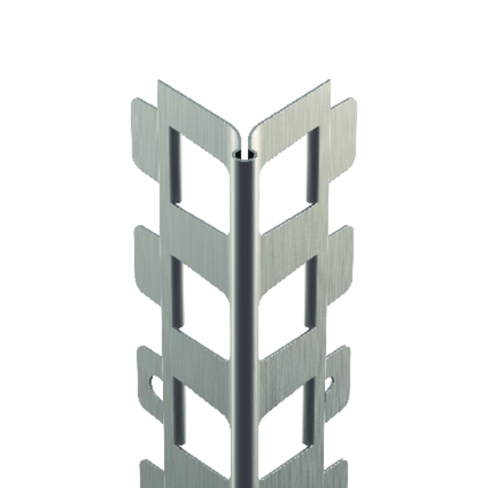Hoekprofiel Pleisterwerk Inox voor binnen- en buitentoepassing met lengte 3 meter, geschikt voor pleisterdikte tot 12 mm.