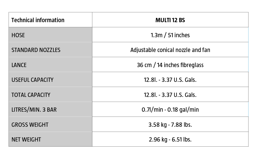 Multi 12 BS van IK is een professionele drukspuit met FPM dichting en heeft een capaciteit van 12 liter, ontwikkeld voor maximale kracht en bestendig tegen de meest aggresieve chemicaliën.