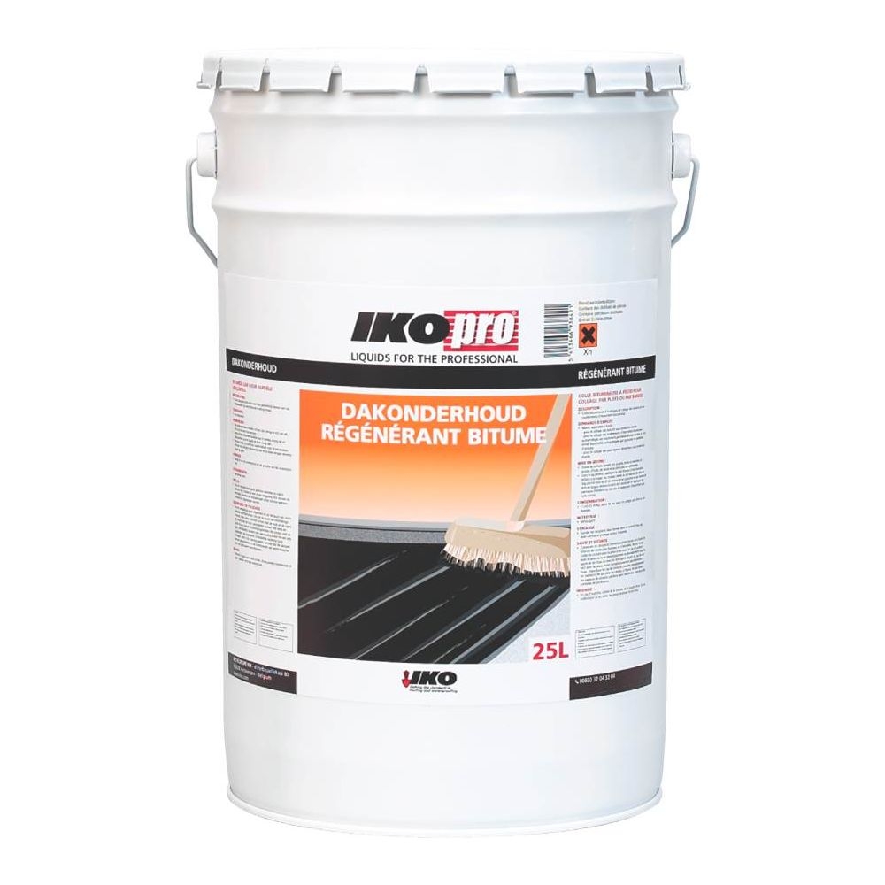 IKOpro Dakonderhoud 25L is een soepele bitumen om de levensduur van bestaande dakbedekking (roofing) te verlengen. Het product dringt diep in de poriën en vult oneffenheden, herstelt en voedt de bestaande dakdichting. Bus van 25 liter