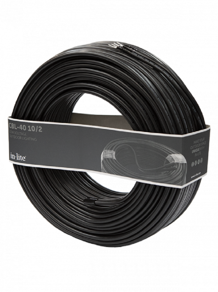 Laagspanningskabel type 10/2; 12 volt 2-aderig. Wordt geleverd als bundel van 40 meter compleet met kabelschoenen en eindisolatie. Let op: Wil je deze kabel aansluiten op de nieuwe HUB-50 of HUB-100 transformator? Knip de kabelschoentjes er in zijn geheel van af en strip de kabel zoals beschreven in de handleiding van de transformator.