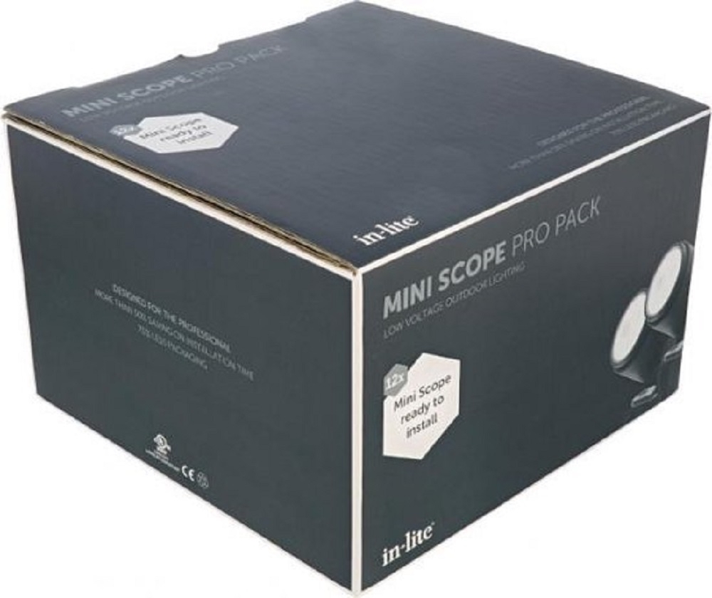 Deze pro pack bestaat uit 12 voorgemonteerde MINI SCOPES. Deze kleine spots worden standaard geleverd met een beugel en grondpen. Dit maakt het armatuur geschikt voor montage aan bijvoorbeeld een schutting of in een overkapping en voor het aanlichten van planten en struiken in de border.
