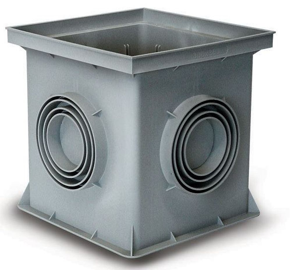 Inspectieput PVC 30x30. Aansluiting van verschillende buizen mogelijk door middel van het uitsnijden van de benodigde diameter. Het deksel en de geurafscheider voor deze verzamelput zijn niet inbegrepen in dit artikel.