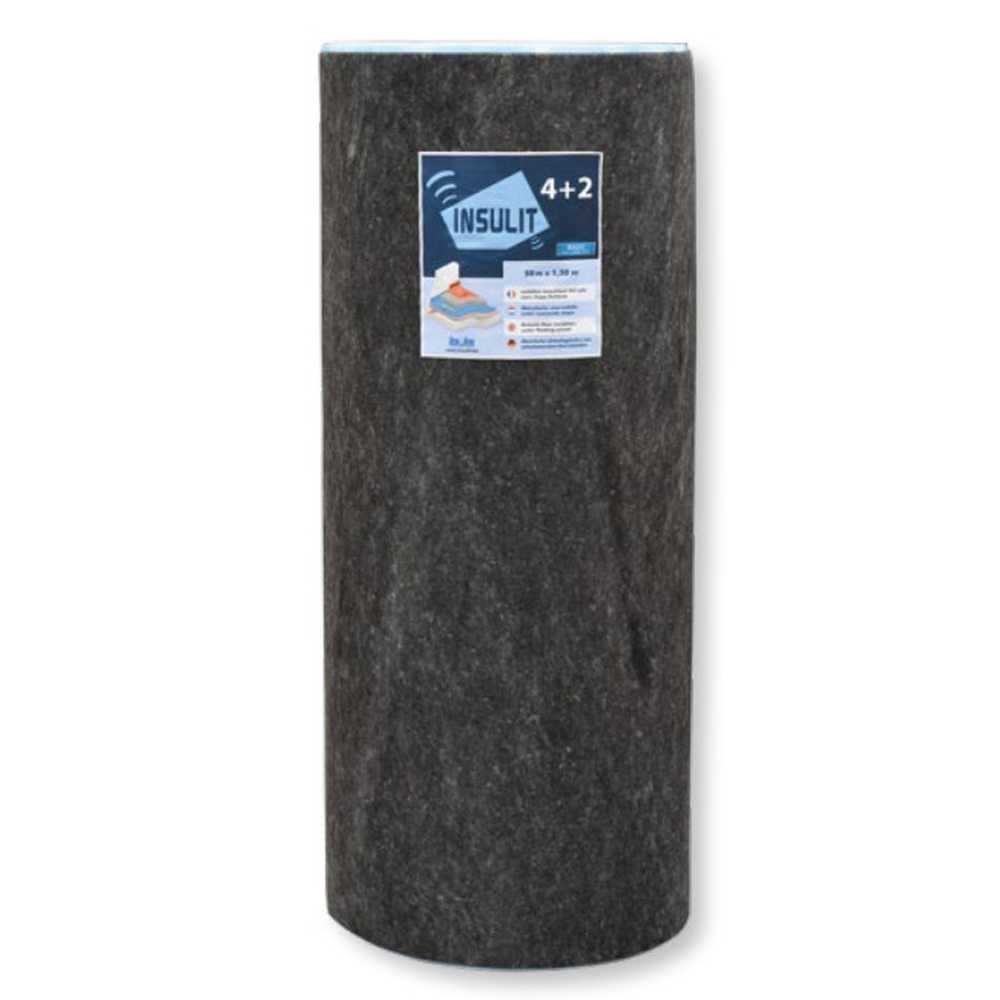 Insulit 4+2 is een akoestische onderlaag die bestemd is om de overdracht van contactgeluiden en schokgeluiden tussen verdiepingen te beperken tegen een voordelige prijs-kwaliteitsverhouding.