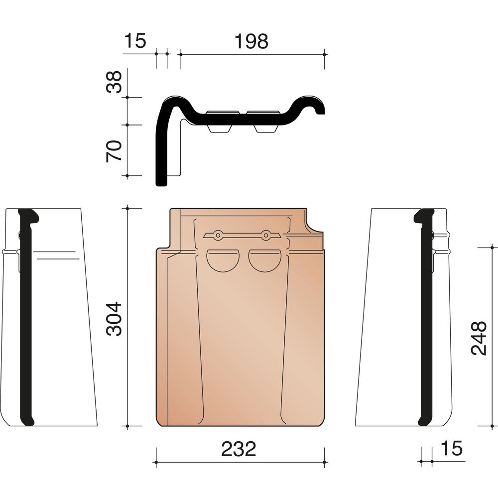 Linker gevelpan voor Stormpan 44 (Tuile du Nord) in natuurrood
