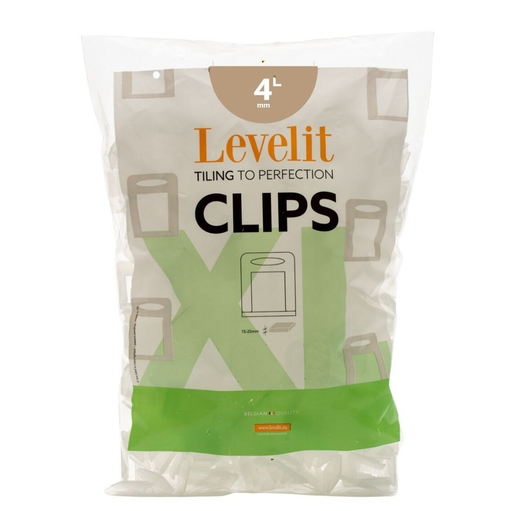 Het gebruik van Levelit clips resulteert in een mooie, strakke vloer of wand. Deze tegel clips zijn ideaal te combineren met nivelleersystemen voor vloer- of wandtegels. Zorg ervoor dat je de clips niet te snel verwijdert; laat ze minimaal 24 uur zitten om de lijm volledig te laten drogen.