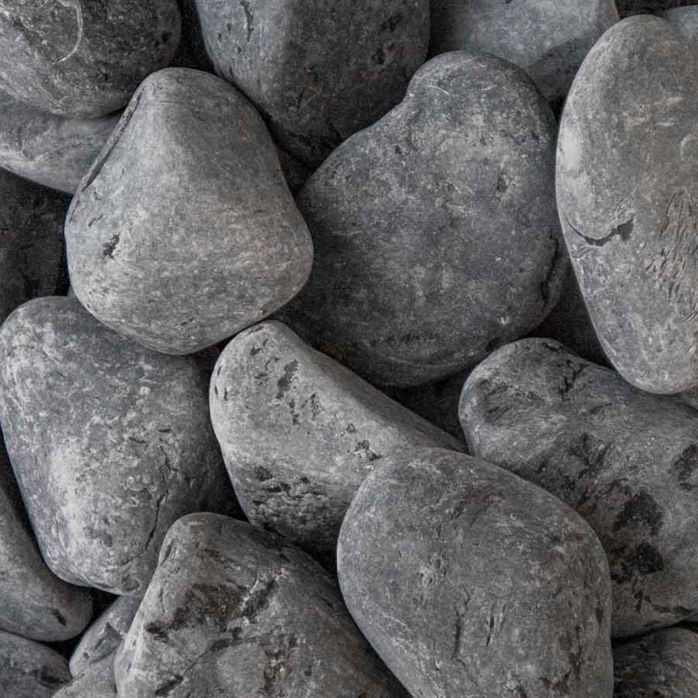 Nero Ebano is een ronde, donker antraciete kalksteen, geschikt voor landscaping.