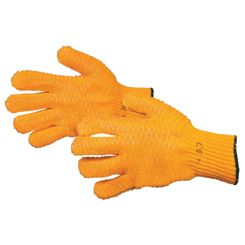 - ademende, grof gebreide polykatoenhandschoenen met meer grip en en tegelijkertid slijtvaster door de PVC-netcoating