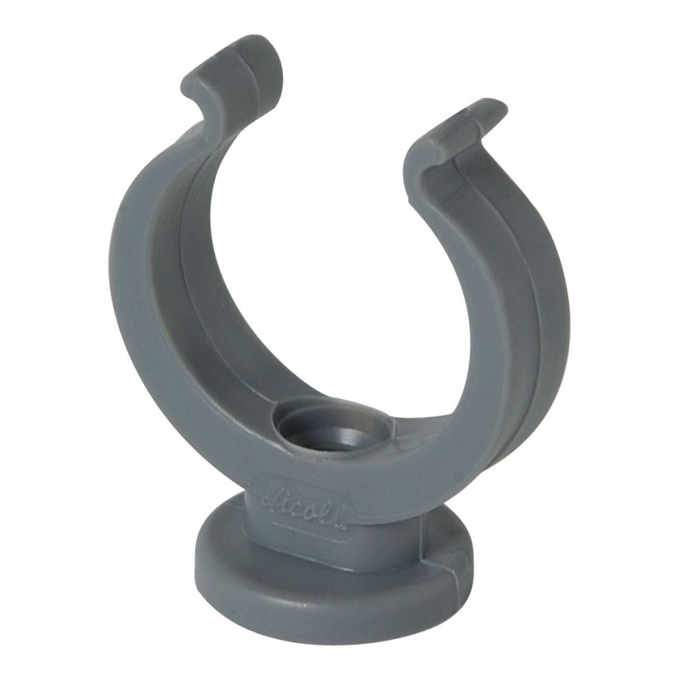 Een PVC beugel voor het bevestigen van buizen aan de muur.