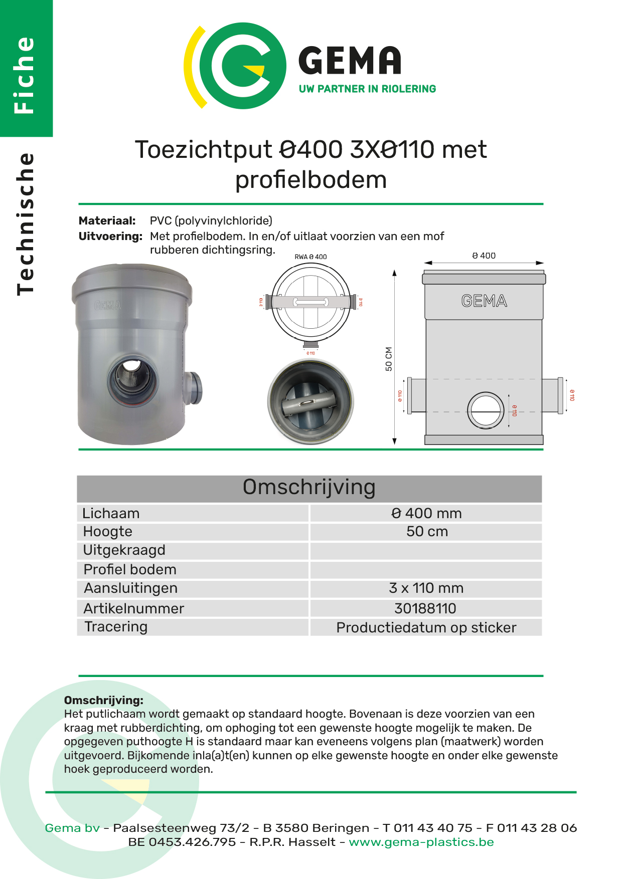 - De put kan verhoogd worden met behulp van een stuk buis Ø400