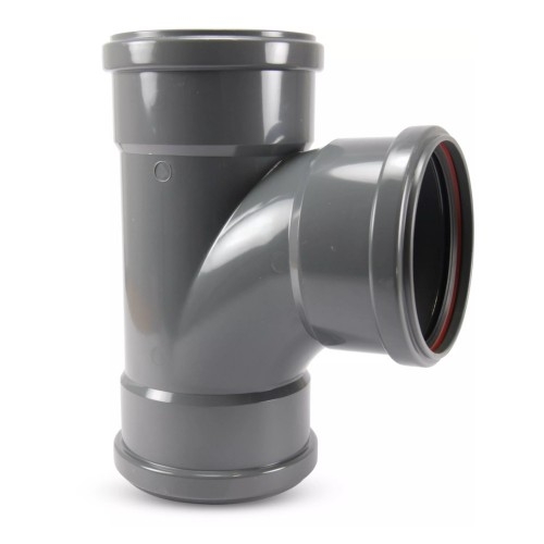 - Sterk PVC T-stuk Ø125 mm met 3 mofverbindingen
