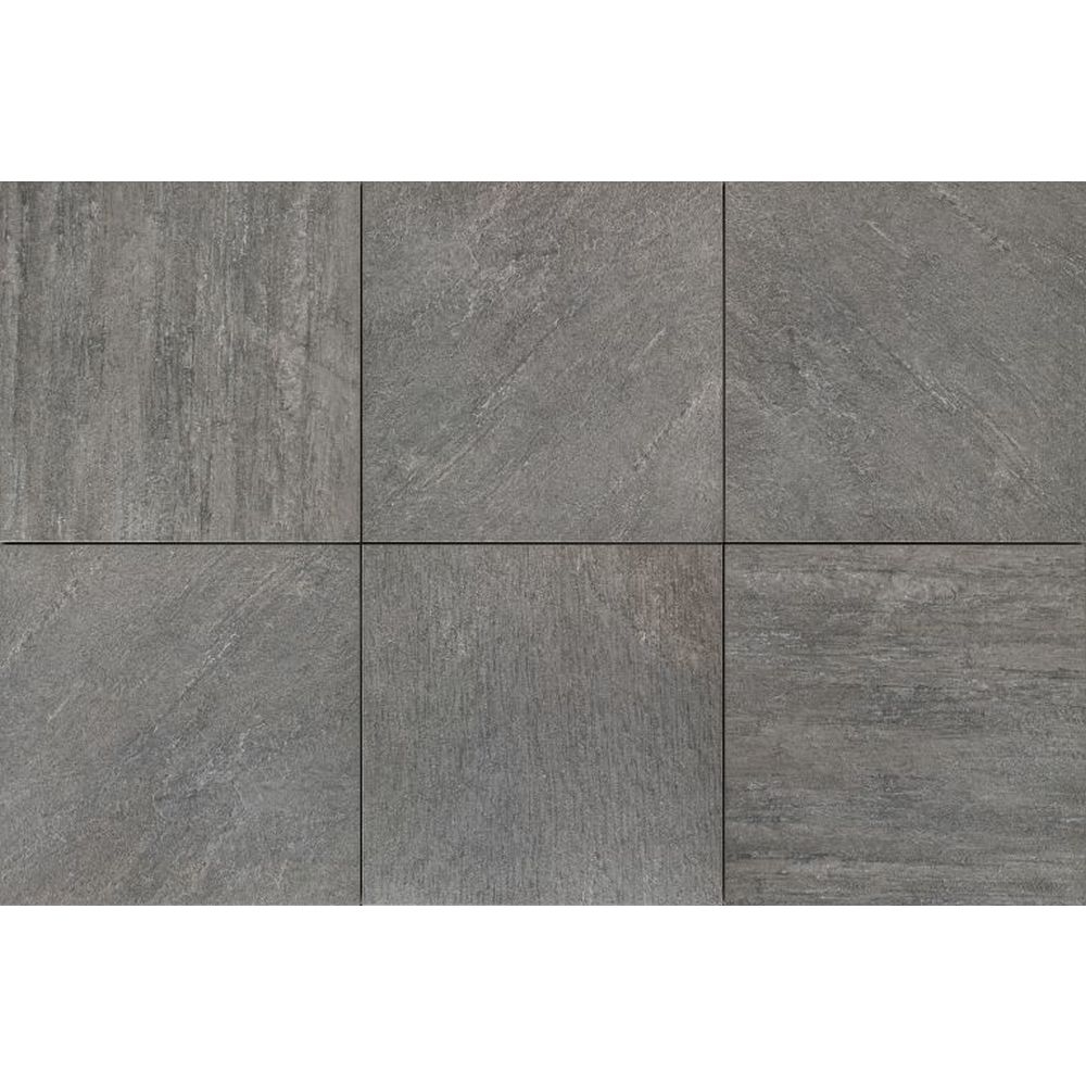 Redsun Cerasun 3+1 Palermo Grigio is een volkeramische (gekleurde body), gerectificeerde terrastegel met genuanceerde kleurschakeringen.